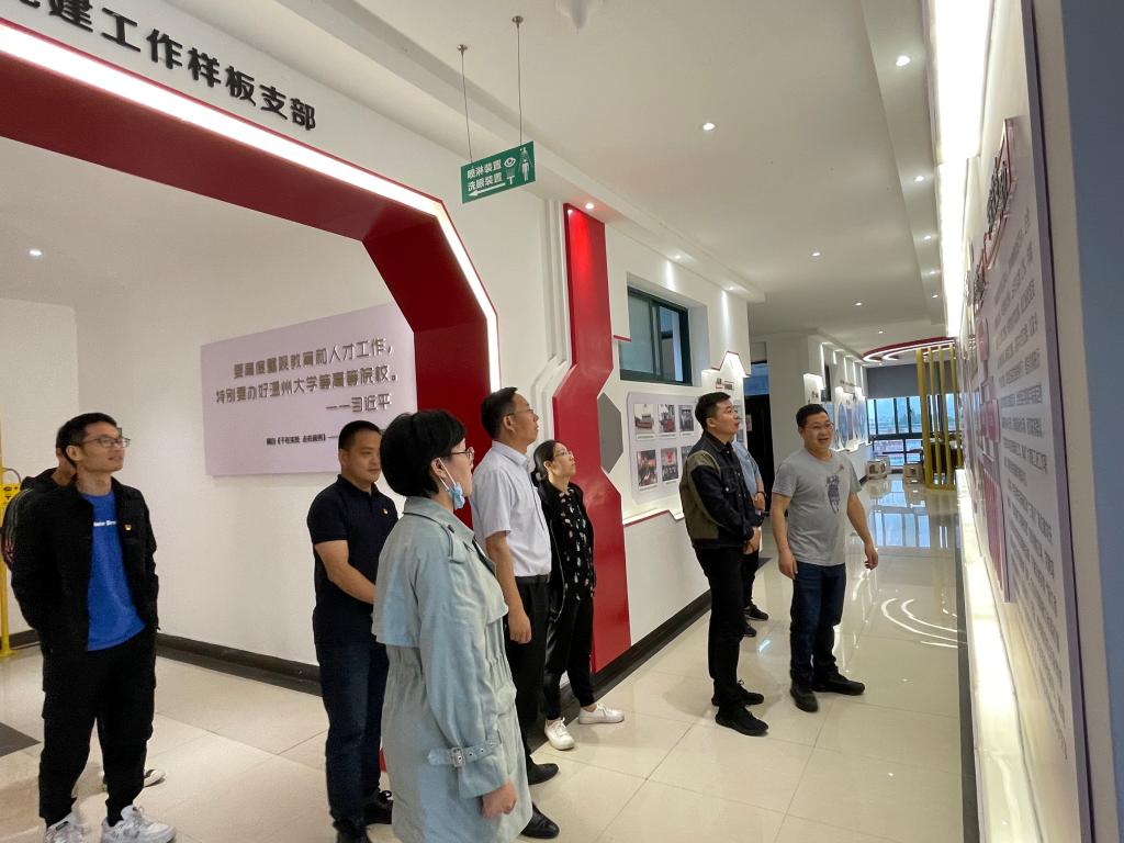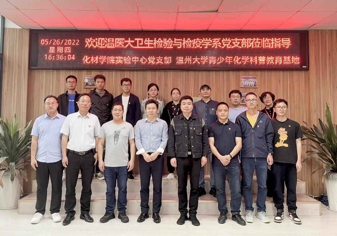 5月26日下午,温州医科大学检验医学院党委副书记陈贤新带领卫生检验与检疫系党支部一行9人到人妻NTR 进行党建工作交流,院党委副书记周敬业、教工实验中心党支部书记刘妙昌及部分支部党员老师参加交流。