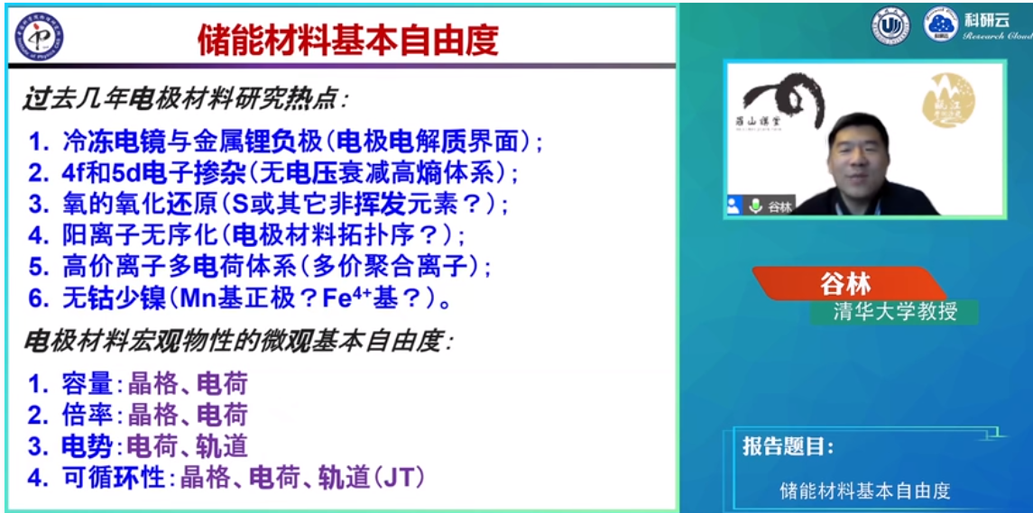 化材学院瓯江论坛-清华大学谷林-储能材料基本自由度: //b23.tv/iDxaAm5