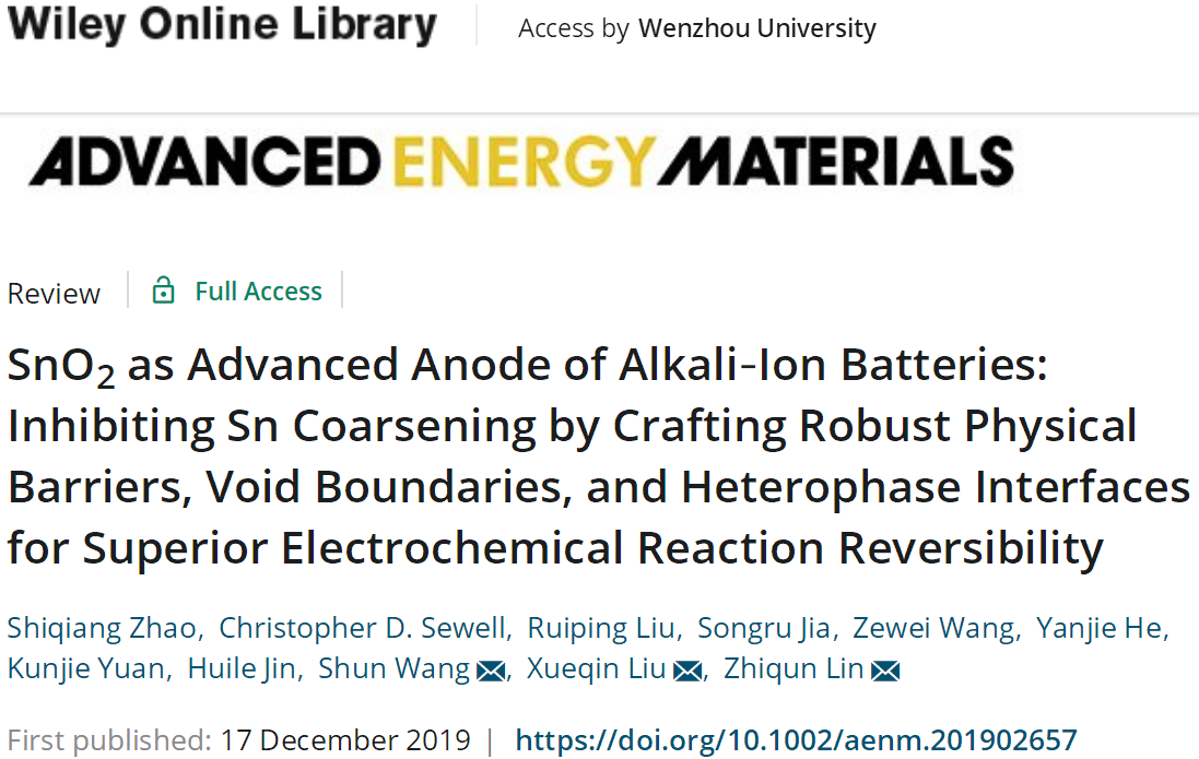 化材学院赵世强博士有关二氧化锡作为碱金属离子电池先进负极材料的综述性论文“SnO2 as Advanced Anode of Alkali-Ion Batteries: Inhibiting Sn Coarsening by Crafting Robust Physical Barriers, Void Boundaries, and Heterophase Interfaces for Superior Electrochemical Reaction Reversibility”(二氧化锡作为碱金属离子电池先进负极材料:构建稳健的物理屏障、孔隙边界、异质界面抑制锡粗化增强电化学反应可逆性),化材学院院长王舜教授与美国佐治亚理工学院林志群教授为通讯作者,人妻NTR