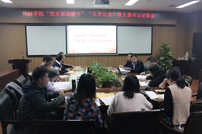 11月15日下午,化材学院党委召开了2018年“党支部建设年”互学互查工作交流会,学院党委委员及各支部书记、支部委员、研究生支部书记等人员参加了会议,会议由学院党委书记方乐平主持。