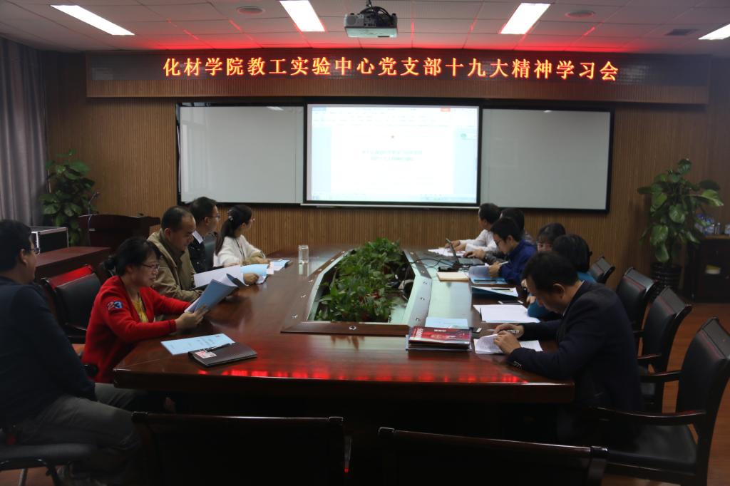 党的十九大胜利闭幕之后,为更好地学习贯彻落实党的十九大精神,准确理解和把握十九大报告中提出的新思想、新论断、新提法和新举措,按照学校要求和部署,化材学院实验中心教工党支部于11月13日上午在学院204会议室开展了“牢记使命 不忘初心”十九大报告主题学习会。会议由支部书记刘妙昌主持,全体支部党员参加了本次会议。