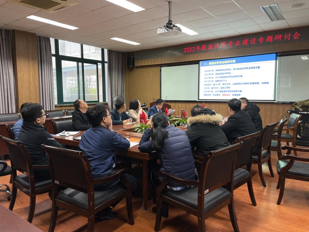 于3月22日下午13:30在11B-204会议室召开“2022年能源化学专业建设专题研讨会”,学院党委书记刘吟、院长杨植、副院长陈锡安以及十八位教师代表参加了本次会议,会议由化学系系主任方国勇老师主持。