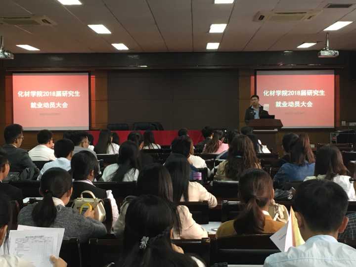 学子在为求职四处奔忙。为了充分调动毕业生们求职的积极性,让大家及时掌握就业的最新动态以及就业中的注意事项。10月29日10点,化材学院在化材楼11B208室召开2018届毕业研究生就业动员大会。化材学院研究生辅导员邹涌彬及全体2018届毕业研究生参加了此次大会。大会由研究生辅导员邹涌彬主持。