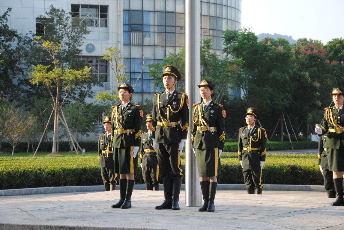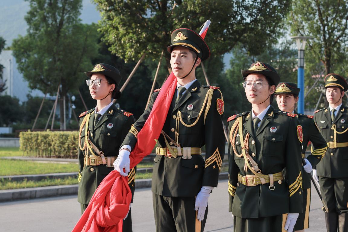 国旗护卫队的护送下,鲜艳的五星红旗缓缓入场,伴随着嘹亮的国歌,五星红旗冉冉起升。246位化材学子身穿统一的服装齐唱国歌,嘹亮的歌声,激荡着每一个同学的爱国之情。