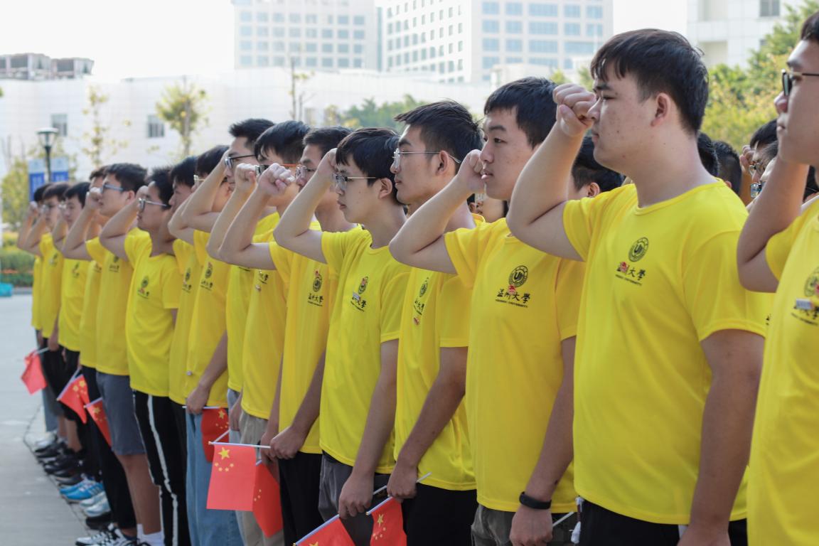 中国共青团是一步一步踏踏实实的努力发展,成长到今天的,如团徽上的齿轮一格一格。为让2019级新生更加了解中国共青团,在叶寅璐同学的带领下,全体人员面向行政楼,高举右拳,重温神圣的入团誓词。让青年团员更加明确了如何做一名优秀的共青团员,认真反思自己是否履行了当初入团时的承诺。