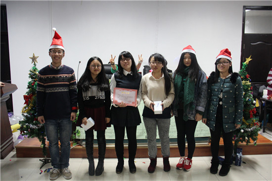 2014年12月21日6:30,圣诞夜的歌声在化材学院11C-208飘荡开来,炫彩的灯光,精心的布置都氤氲着圣诞的气氛。这是化材学院网络协会举办的名为“圣诞夜,约么”的主题活动。学生会创新实践中心干事张专和吴丹丹担任活动主持人。本次活动聚集了60多位同学,同时网络协会前会长李姝婉学姐,前副会长李若男学姐以及学生会副主席周基政学长也受邀参加。