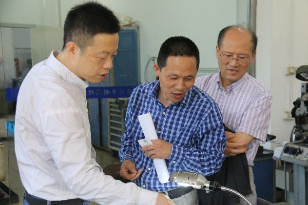 院长王舜首先代表全院教职工对周益民副巡视员一行的到来表示热烈欢迎,并介绍学院各个实验室的整体情况。随后,周益民副巡视员一行先后走访学院有机分析仪器室、基础化学实验室、水性聚氨酯实验室以及制笔实验室等。各实验室负责人分别就实验室仪器、取得成果等作了简单介绍,并一一解答周益民副巡视员一行提出的问题。