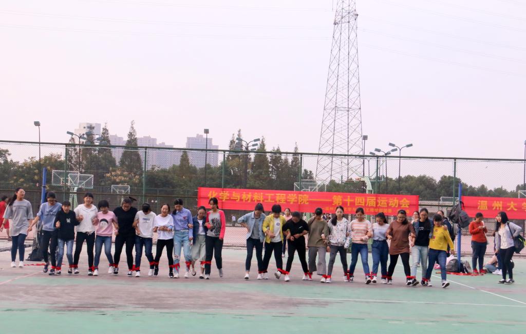 在南校篮球场举行师生趣味运动会。参加本次趣味运动会的主要是化材学院的老师、2017级新生。
