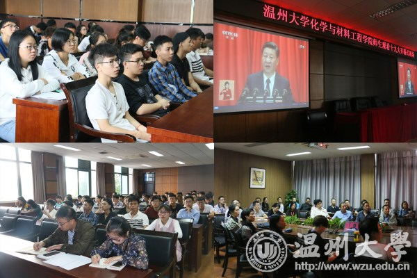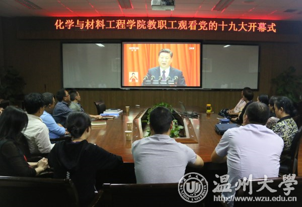 10月18日上午9点,化材学院师生在11B208、204两个会场观看中国共产党第十九次全国代表大会开幕盛况,收看习近平同志代表十八届中央委员会向大会所作的工作报告。报告会结束后,教工支部和学生支部组织党员进行热烈讨论。