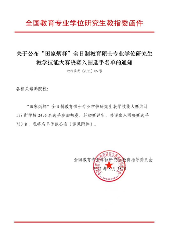 2021年12月22-24日,由全国教育专业学位研究生教育指导委员会主办,田家炳基金会冠名,浙江师范大学承办的“田家炳杯”全日制教育硕士专业学位研究生教学技能大赛决赛在浙江师范大学成功举办。