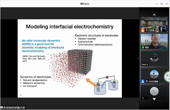 最后,厦门大学程俊教授作了题为“Chemical Dynamics in Catalysis and Electrochemistry”的主题报告。该报告从电场作用下电极界面上电荷转移和成键断键的动态过程角度讲述了催化和电化学中的动力学问题。