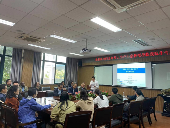 11月12日上午,西北师范大学卢小泉教授做客化材学院,作了题为《国家自然科学基金项目申请书撰写要点》的报告。院长王舜、副院长金辉乐、学院预申报国基项目的教师、新引进青年博士40余人参加了报告会。