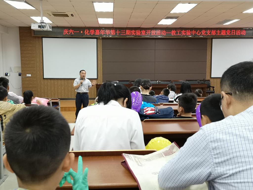化材学院共同举办了化材学院教工实验中心党支部第十四期实验室开放日活动,邀请学校教职工子女进入实验室体验生活中的化学,为小朋友们送上”六一”儿童节礼物。当天上午,校工会主席张希均老师、学院党委书记方乐平老师、化材学院党委副书记潘从义老师、学院工会主席陈锡安老师、实验中心教工党支部书记刘妙昌老师及其支部党员教师与大学生志愿者来到现场。