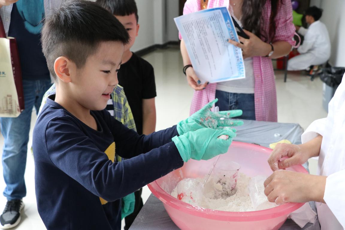 “从实验内容地创作,到制作实验开放宣传资料以及实验物资的准备与活动现场的布置等由五个实验开放团队一起分工协作,历时半个多月之久,比较顺利地完成全套实验开放活动流程的安排。”团队成员吴歆瑜介绍说。据了解,此次活动分上午和下午场次,在两个小时内报名140余人,得到校内教工的大力支持,活动参加人数较去年大幅提升。实验活动采取化学实验派对方式进行,孩子们一一体验,仿佛进入一个“化学实验超市”。“这是化材学院利用学院专业优势开发创作实验作品,为教工子女创造福利,我觉得非常好。希望各个学院能有更多的带有专业标签的品牌活动为全校教工开放,提升教职工的幸福感。”校工会主席张希均老师在活动致辞中这样说。