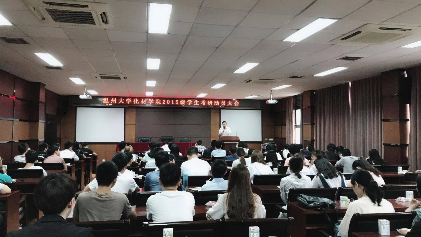 此次会议是化材学院加强学风建设的系列举措的会议,同时也是激励青年大学生继续发扬努力奋斗精神的会议,在考研之路上有许多的困难,同行者是战友,只有坚定的信念才能持之以恒地克服考研备考中的困难。祝愿全体15级考研学生在来年取得傲人的成绩,交出满意的答卷。