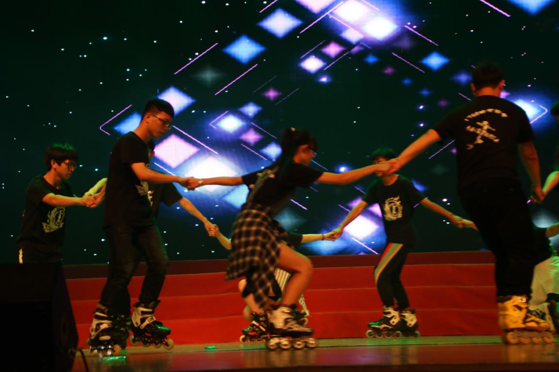 由化材之光校友带来的诗歌朗诵,回顾了化材的发展光辉历程、道出了师生校友的感恩情意。14材料班同学带来的《安和桥》,带着淡淡的青春回忆和眷恋不舍。接下来一首外国友人的说唱燃爆了全场的气氛,现场欢呼声不断,散发着青春激昂活力无限的魅力。14化工班的小品《期末考试》再现了老师对学生的关心关怀。