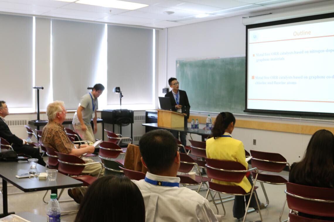 王舜教授带领5位青年教师应邀参加了在加拿大哥伦比亚大学举行的第二届国际电化学能源科学与技术会议,并做了题为“Novel-structured Nanomaterials for Fuel Cell”的邀请报告。会议期间,学院邹超博士、杨克勤博士、林大杰博士、陈锡安博士以及金辉乐高级实验师也分别就自身在太阳能电池、燃料电池、锂硫电池等领域所取得最新研究结果在分会场上做专题报告。此次会议交流,不仅提升了人妻NTR