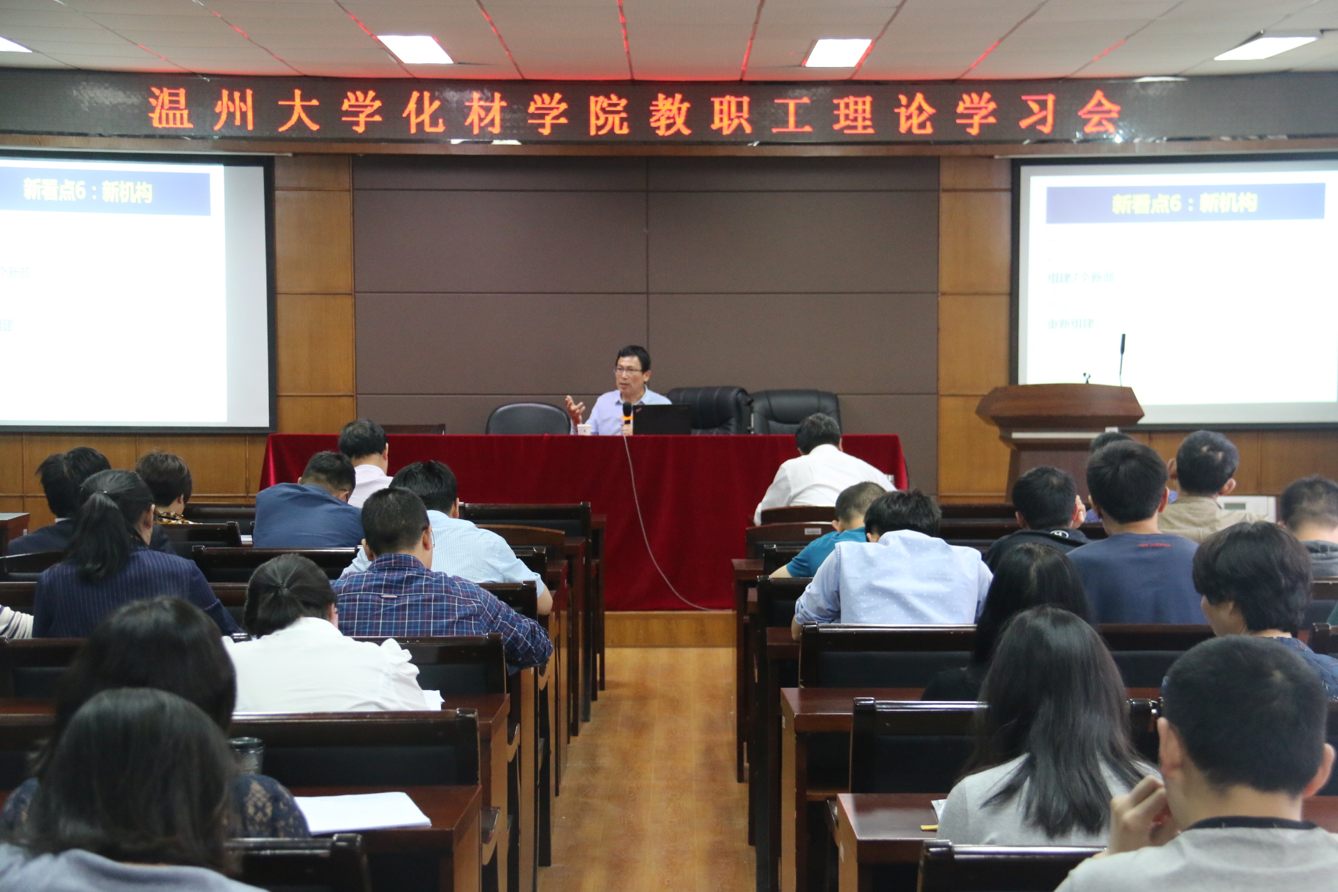 为充分认识学习全国“两会”精神的重大意义,深入学习全国“两会”精神,准确把握全国“两会”精神实质,4月25日下午,化材学院党委组织召开了全体教职工理论学习会,会议邀请了校党委讲师团成员、马克思主义学院王柏民书记作“两会”精神解读的专题报告,化材学院全体教职工参加学习会。