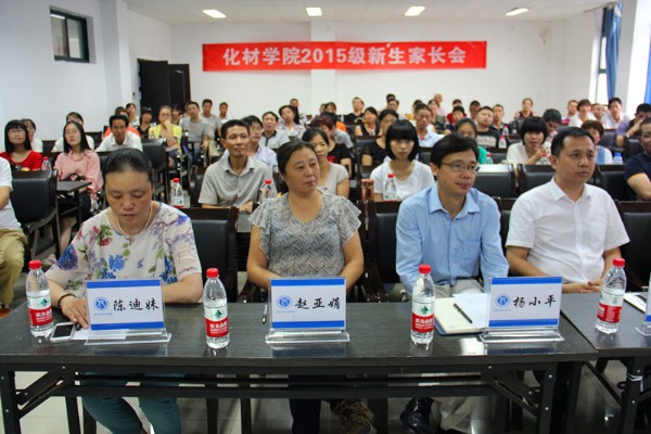 9月8日下午,来自五湖四海的110余名新生家长齐聚化材学院,共商学生四年学业发展。学院全体领导、系主任、辅导员、新生班班主任出席会议。会议由党总支书记方乐平主持。
