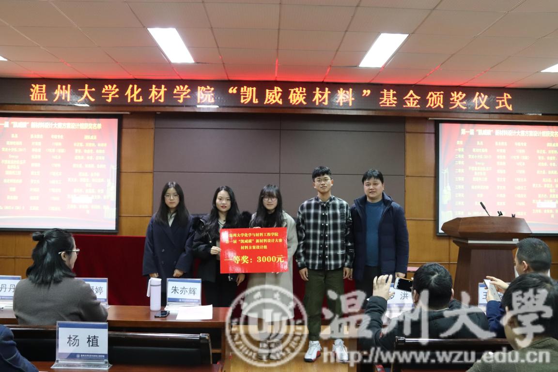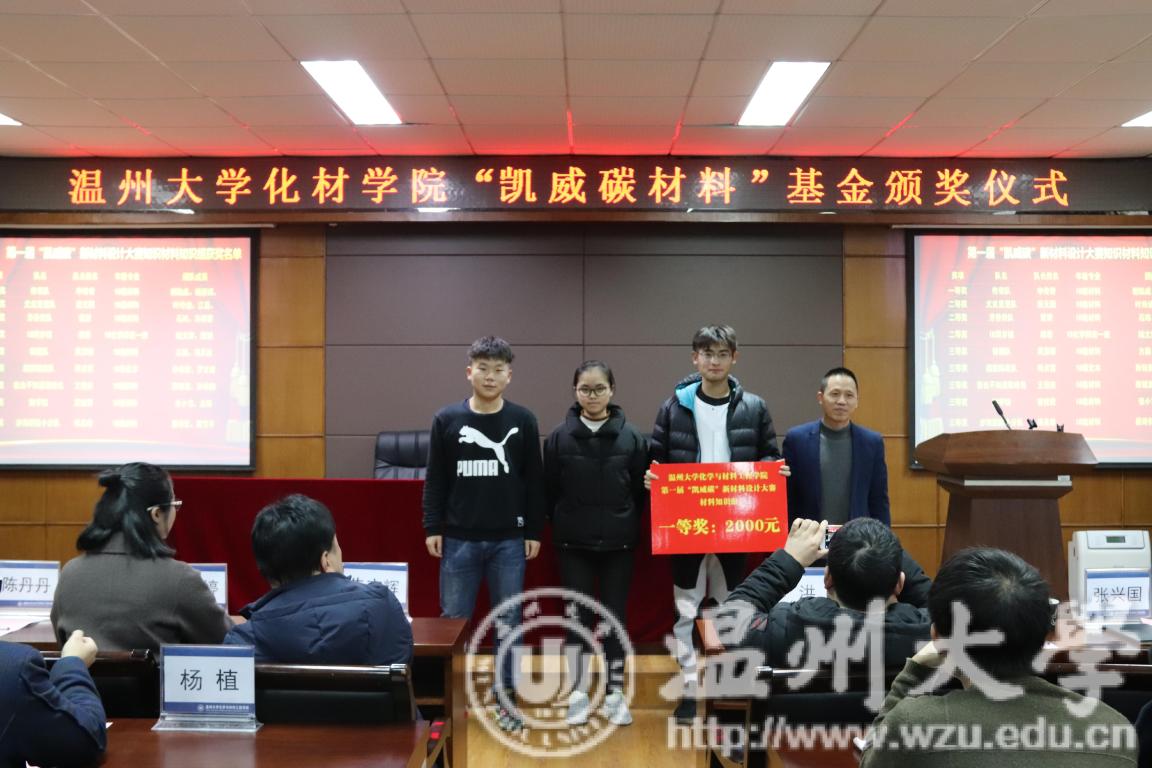最后,潘从义副书记分别宣读了第一届“凯威碳”新材料设计大赛获奖名单、2018年度“凯威碳励志奖”获奖名单,并由学院领导、浙江凯威碳材料有限公司总经理等为获奖者颁奖。颁奖仪式结束后,人妻NTR