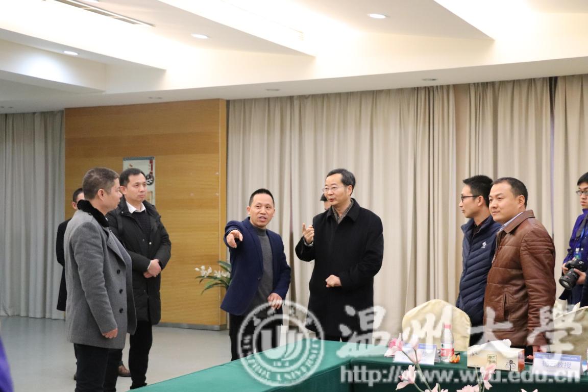交流期间,正在福达合金材料股份有限公司调研的浙南产业集聚区党工委书记、管委会主任徐蓬勃一行与学院院长王舜进行了交流,徐蓬勃书记希望化材学院利用人才和科研优势加强与浙南产业集聚区的企业在新材料、新能源领域开展产学研合作,利用双方各自优势资源,不断提升学院与企业创新能力。
