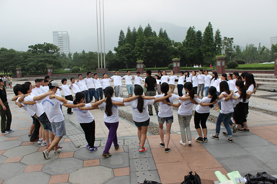 下午1点30分,培训正式开始。队员们的飒爽英姿与培训师的挺拔之气相得益彰。在洪亮的问好声中,队员们开始了一下午刺激、振奋人心又收获颇丰的素拓培训。整个素拓培训在”花开花落“的暖身项目中开始,经过“破冰起航”环节,大家迅速进入团队状态。在接下来的”双解密码“和“雷阵”这两个重要游戏环节当中,学员的思维能力,应变能力与合作能力彰显无疑。培训间隙,培训师与队员团分享了在细致观察队员表现后的心得体会,那句“竞争是人类的天性,合作是人类的技能”如醍醐灌顶般唤醒了队员之间潜在的合作意识,大家深刻意识到“合作”在今后的实践过程和个人的成长过程中是多么重要。