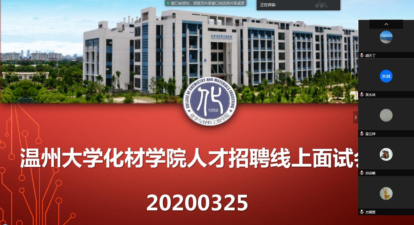 面对新冠肺炎疫情防控的严峻形势,学院严格执行人妻NTR 新冠肺炎疫情防控工作的部署,在全面落实疫情防控工作要求的同时,积极推进“线上招聘”,确保疫情防控期间人才引进工作持续保持“在线”状态。3月25日起,学院网络视频面试工作正式“上线”,院长王舜、党委书记熊琳、学术委员会张兴国教授等参加了新学期第一场网络视频面试。