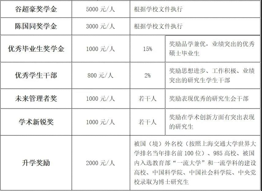 新入学的全日制非定向硕士研究生,文科类研究生每年可获得奖助学金不少于16500元,理工科研究生每年不少于18000元。每年获得奖助学金最高的可超过46000元。