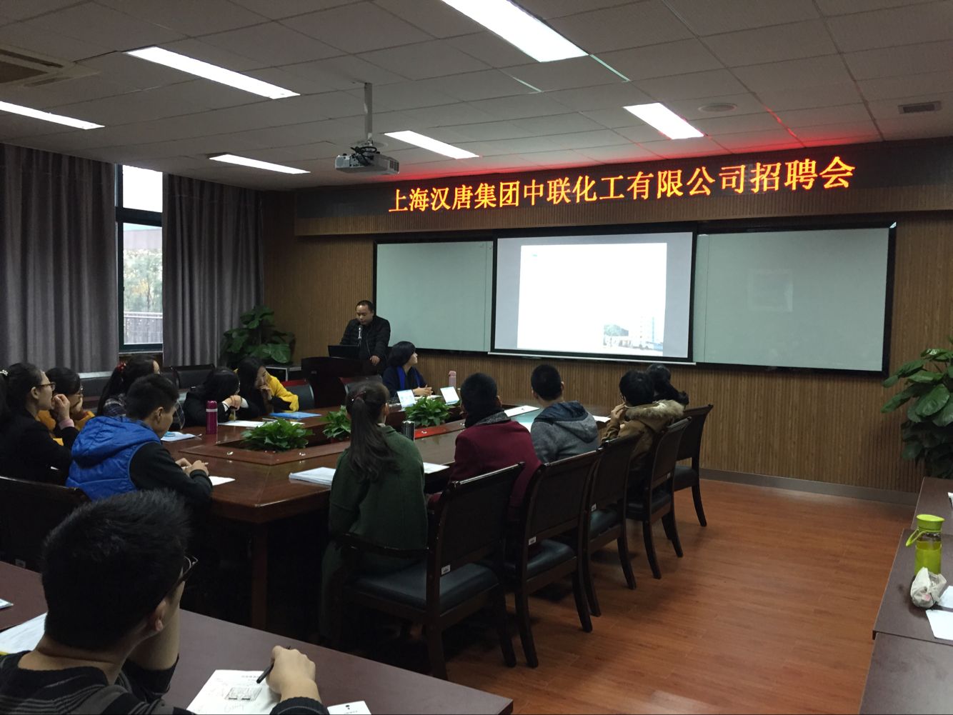 12月9日下午1:00,在化材学院204举办了上海汉唐集团中联化工有限公司专场招聘会,此次招聘会共招聘实验员2名、市场销售人员5名、监测人员2名,在场学生积极踊跃参与。