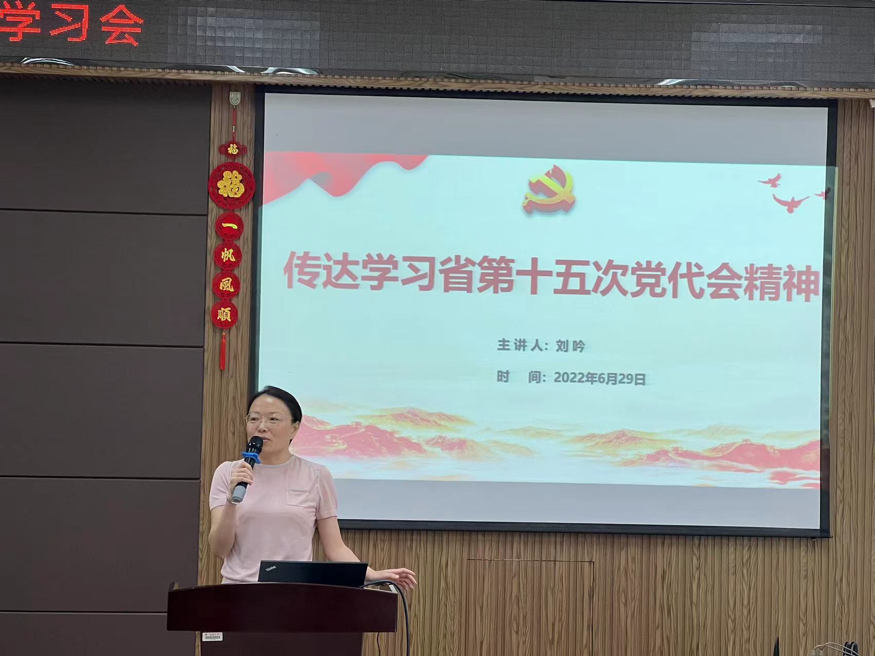第二项议程,是党委书记刘吟传达学习省第十五次党代会精神。刘吟书记强调,省第十五次党代会是我省迈入高水平全面建设社会主义现代化、高质量发展建设共同富裕示范区新征程召开的第一次党代会,具有重大政治意义和战略意义。她从9个方面历史性成就、8个方面规律性认识,“5大战略指引”、“11方面重要遵循”,“两个先行”奋斗目标和“8个高地”具体目标以及党的全面领导和从严治党等方面,对省第十五次党代会进行了解读。