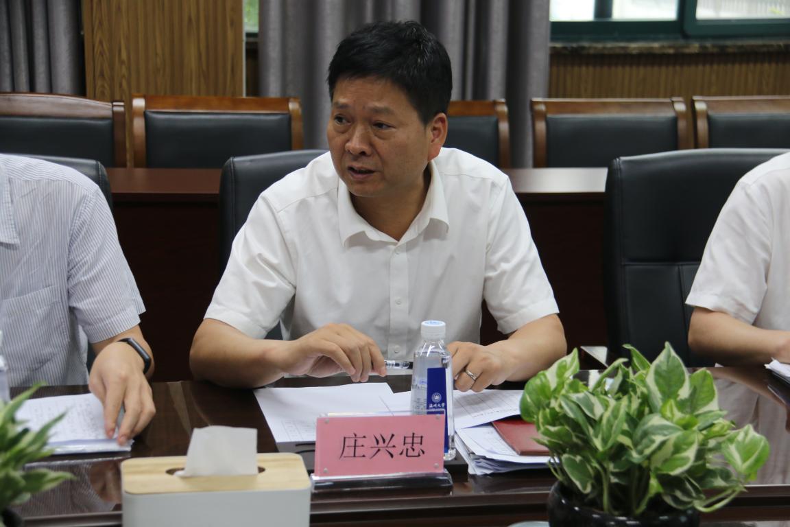 校党委副书记庄兴忠总结发言,本次座谈会是一次极好的深入交流的机会,化材学院作为学校唯一的博士点单位,要有高站位、高视角、高思考,应将科创项目培育工作和学科建设、人才培养结合起来,希望学院既要充分利用好自己的优势与资源,做好项目长期培育工作,以赛促教,以赛促学,以赛促创,激发持久动能,形成全方位影响力。