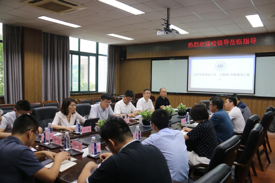 ,创新创业学院院长施永川、招就处处长蔡峰、商学院党委副书记唐华、教育学院党委副书记彭小媚等陪同调研,学院院长杨植、党委书记刘吟、副院长金辉乐、党委副书记周敬业及学工办老师参与本次调研座谈。