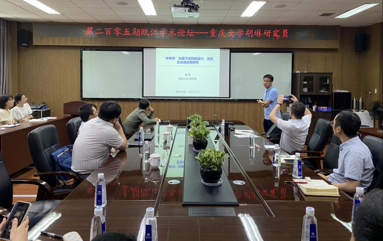 胡琳研究员主要研究方向为不对称有机小分子催化。本次报告主要围绕“亲电性”杂原子试剂的设计、反应及合成应用研究展开的。