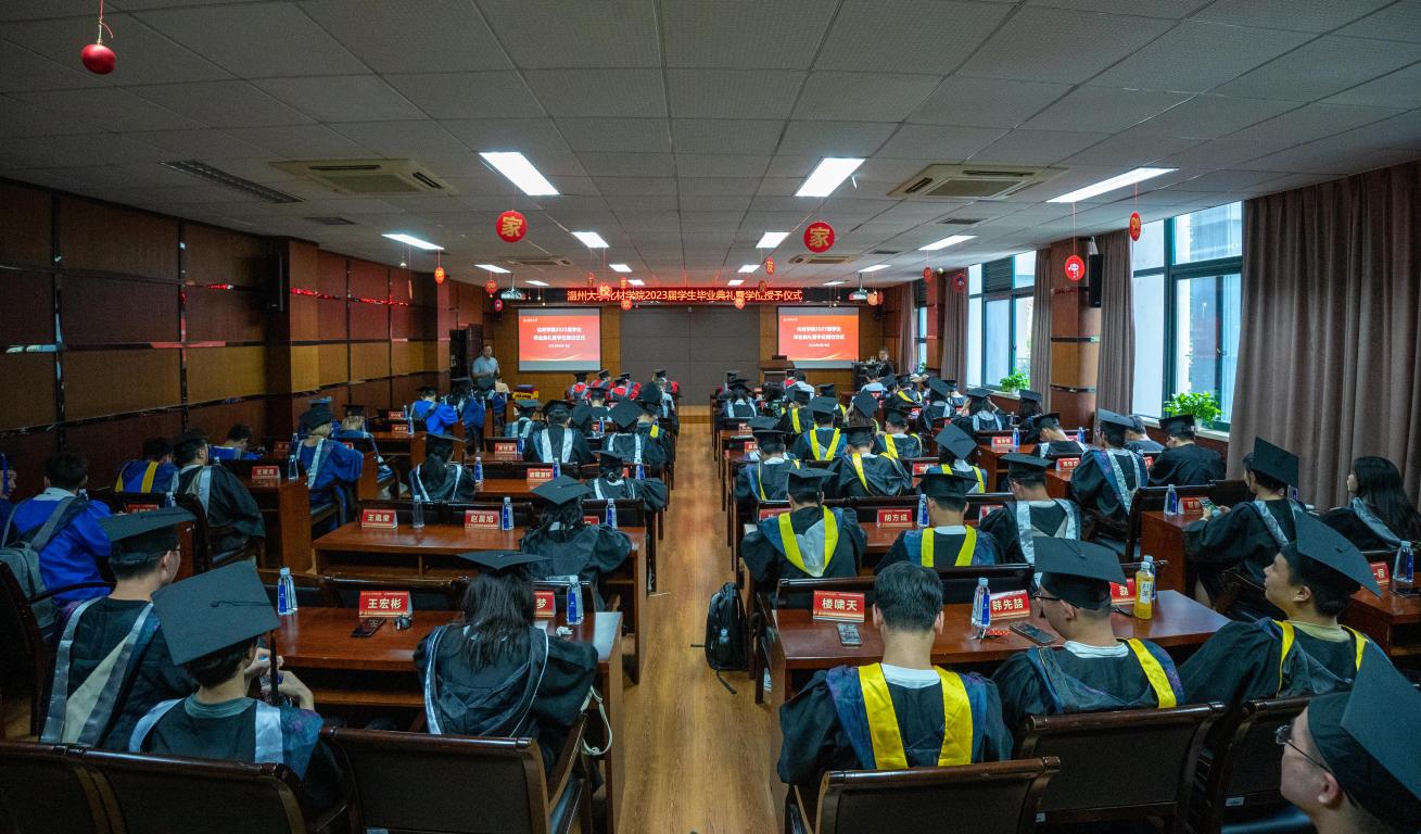 2023届学生毕业典礼暨学位授予仪式在11B-208会议室举行。学院院长杨植、党委书记刘吟、副院长金辉乐、副院长陈锡安、党委副书记周敬业、毕业班相关教师、2023届毕业生代表以及家长代表参加仪式。本次毕业典礼由学院党委书记刘吟主持。