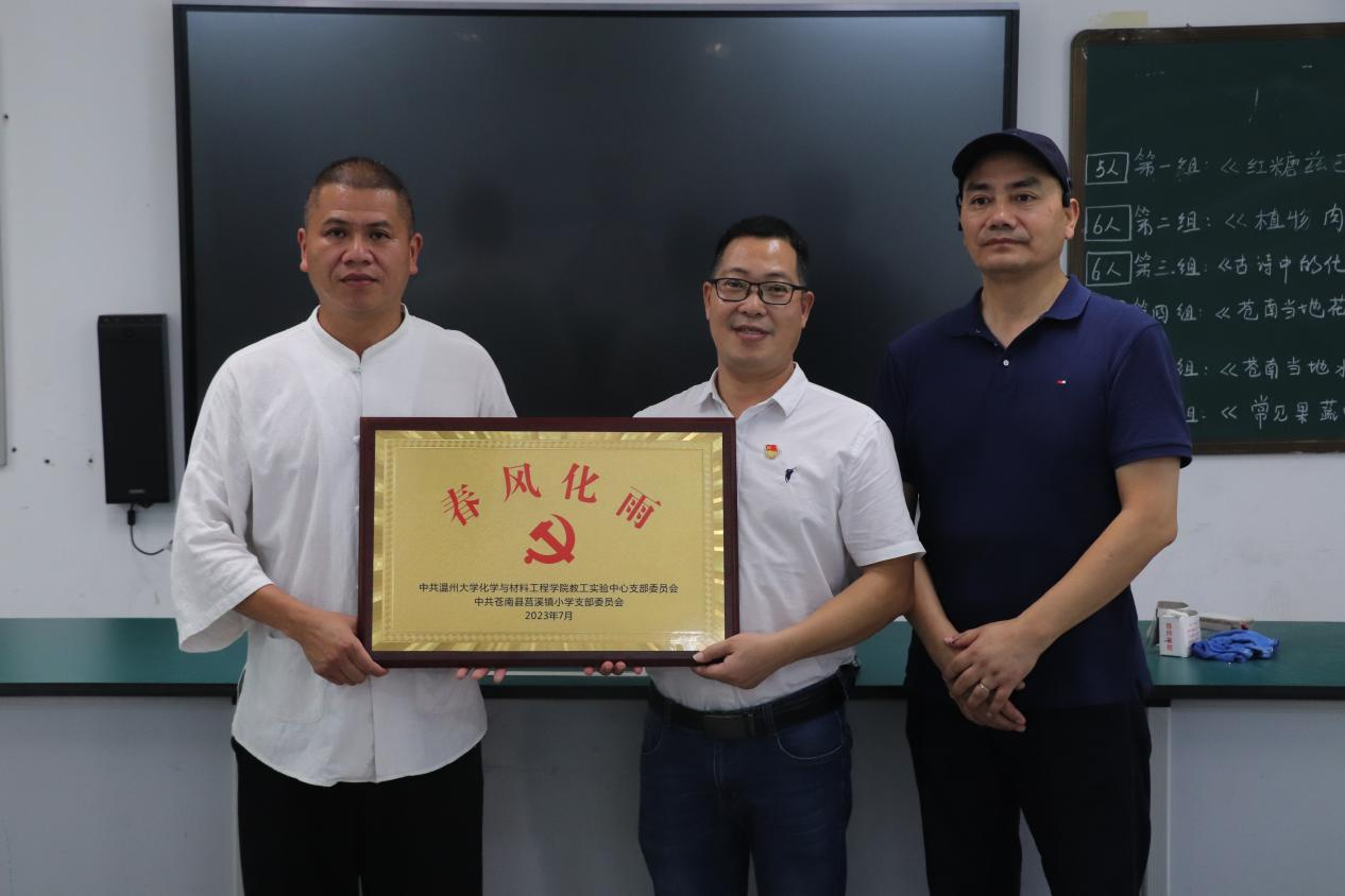 样板支部----实验中心党支部组成的师生科普志愿服务队在支部书记刘妙昌老师的带领下前往温州市苍南县藻溪小学、莒溪小学,开展为期4天的乡村儿童实验科普教育主题党日活动,吹响了党建引领服务乡村振兴“新号角”。