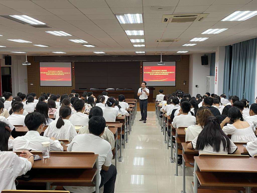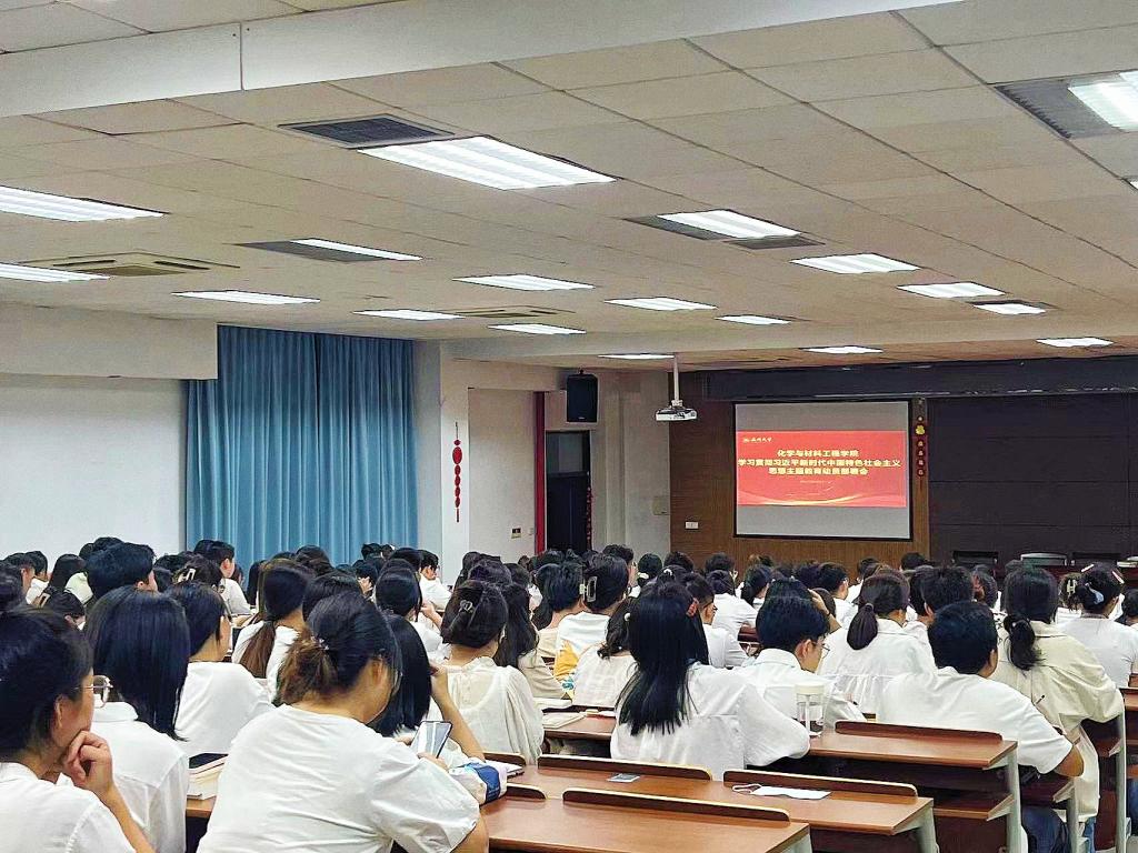9月21日,化材学院党委召开学生党支部学习贯彻习近平新时代中国特色社会主义思想主题教育动员部署会,深入学习贯彻习近平总书记在中央主题教育工作会议上的重要讲话精神,落实学校主题教育实施工作方案总体要求,对学院主题教育工作进行全面动员和具体部署。化材学院党委副书记周敬业到会并作动员部署讲话,党务秘书邹涌彬讲解安排具体工作事宜。化材学院各学生党支部全体党员参加会议。