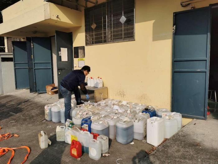 实验中心组织了年底封账前实验室危险废弃物的清运工作。