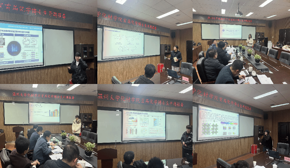 为高质量进行博士研究生培养,确实提高博士研究生学术水平,严格把关博士研究生培养过程,12月27日下上午,化材学院于11号楼204会议室举行首届化学博士研究生开题报告会,本次报告会由侴术雷教授担任专家组组长,杨植教授、陈锡安教授、向卫东教授、夏远志教授、袁一斐教授担任专家组成员,学院部分教师及2023级博士研究生旁听学习。