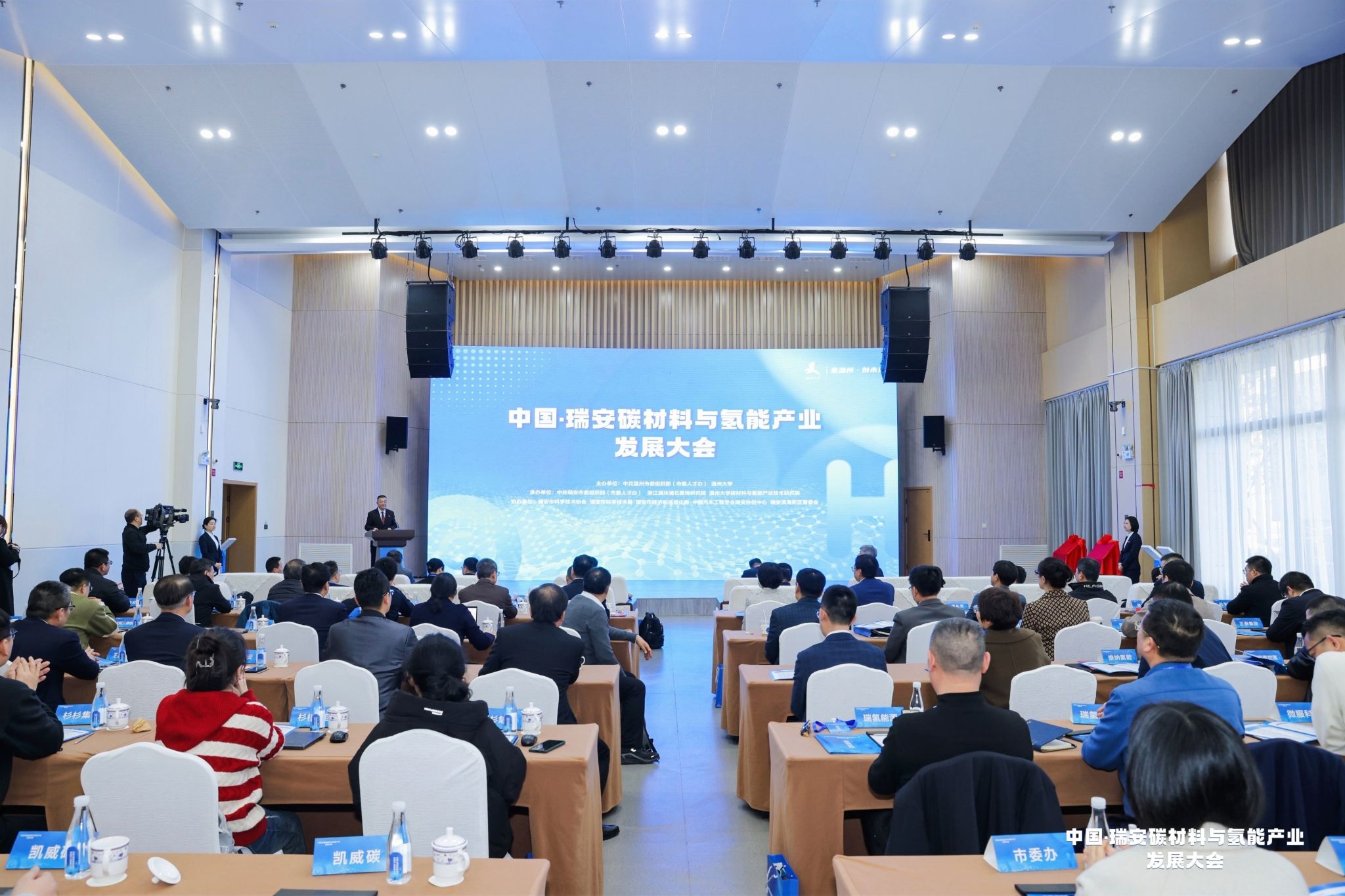 碳材料与氢能产业技术研究院、浙江澜沐浦石墨烯研究院承办的中国·瑞安碳材料与氢能产业发展大会在瑞安市东新科创园顺利召开。澳大利亚科学院院士、技术科学与工程院院士赵慧军、欧洲科学院院士唐军旺、温州市委常委吕伯军、瑞安市委书记李坚、人妻NTR