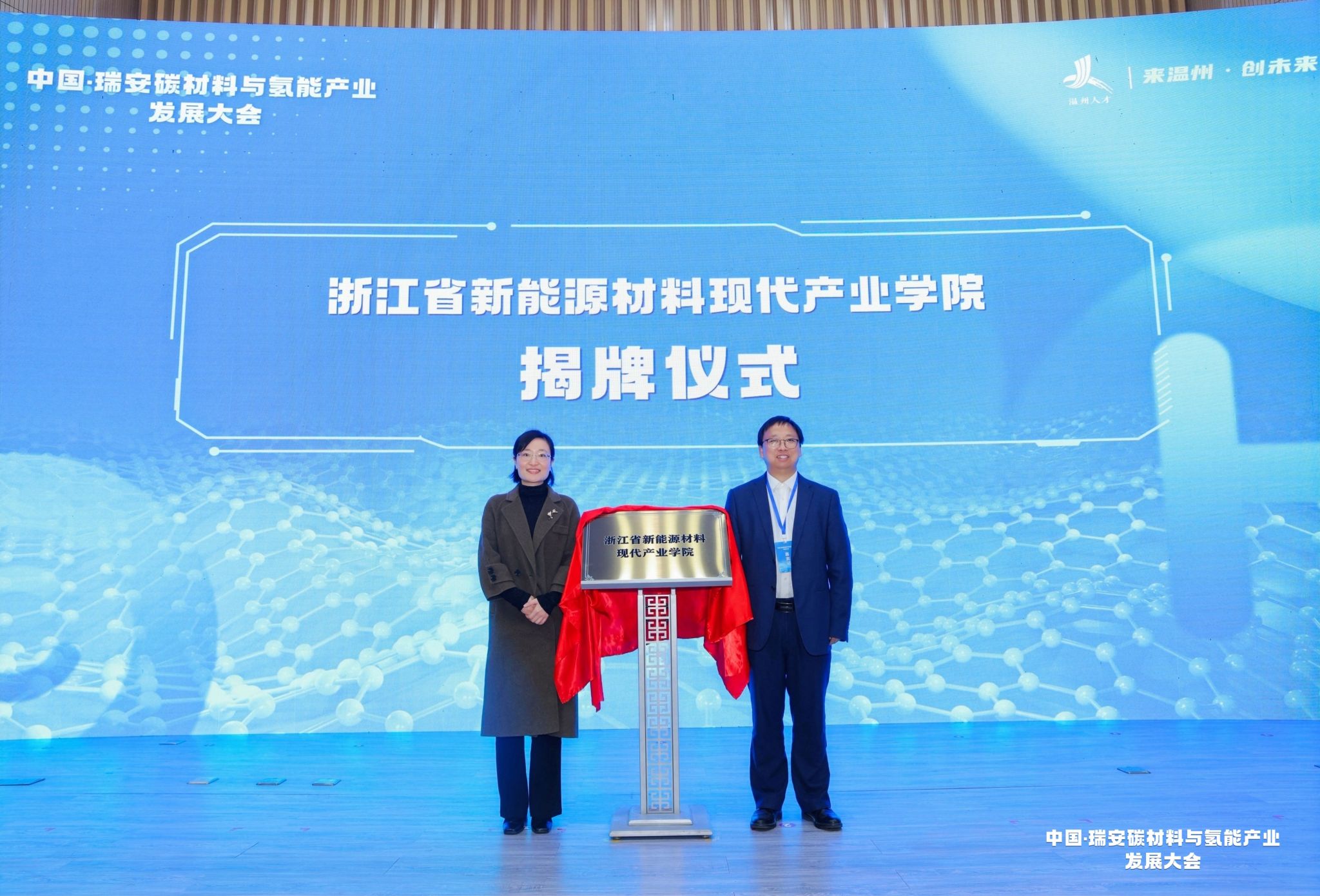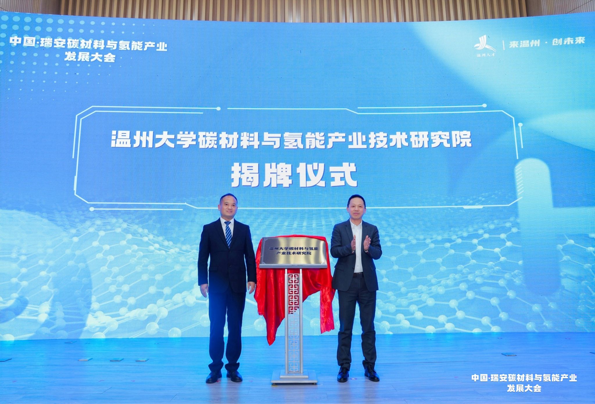 碳材料与氢能产业技术研究院的揭牌仪式。作为省级新型研发机构,未来研究院将以新型碳材料和氢能产业化研发、构建国际创新高地为目标,对接全球资源,建设“高、精、尖”碳材料及氢能产业领域的研究院,助推温州打造碳氢产业集群。