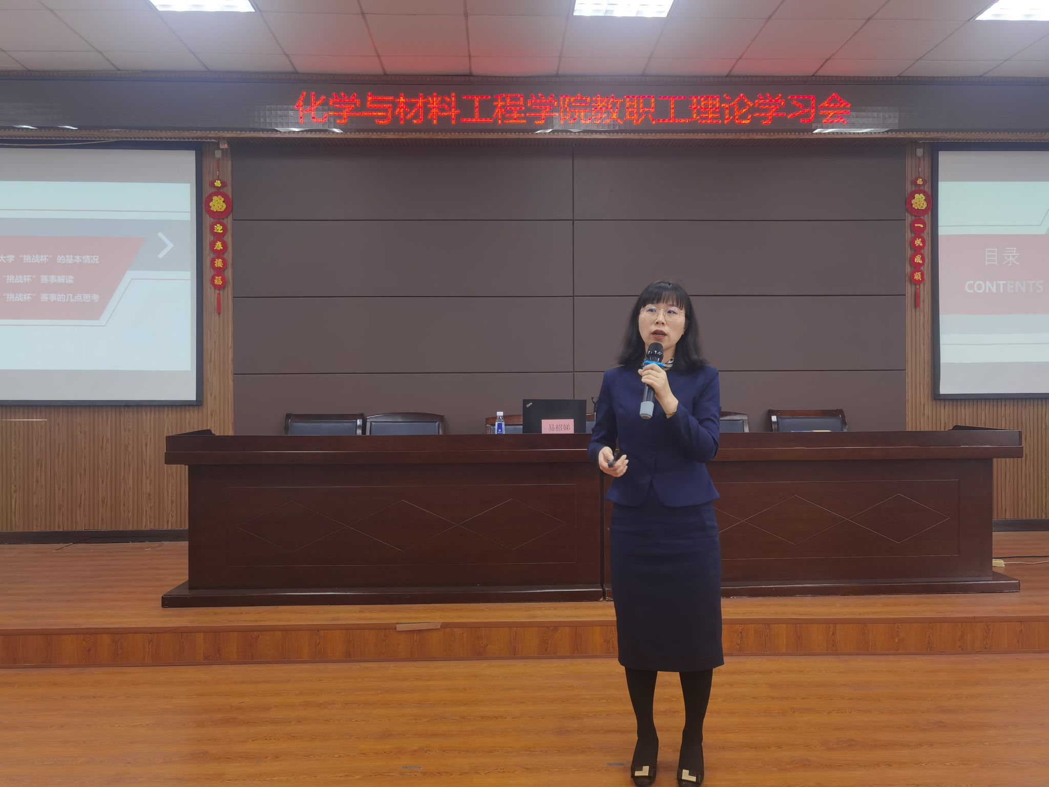 会议邀请校团委书记易招娣作题为《关于“挑战杯”赛事组织工作的实践与思考》的专题讲座。她从学校“挑战杯”的基本情况、全国“挑战杯”赛事解读、关于“挑战杯”赛事的几点思考等方面深入浅出地为我们带来了精彩一课,使在座的老师对参赛资格、参赛类别、评审标准、赛事环节、比赛技巧等方面有了更加清晰的认识。