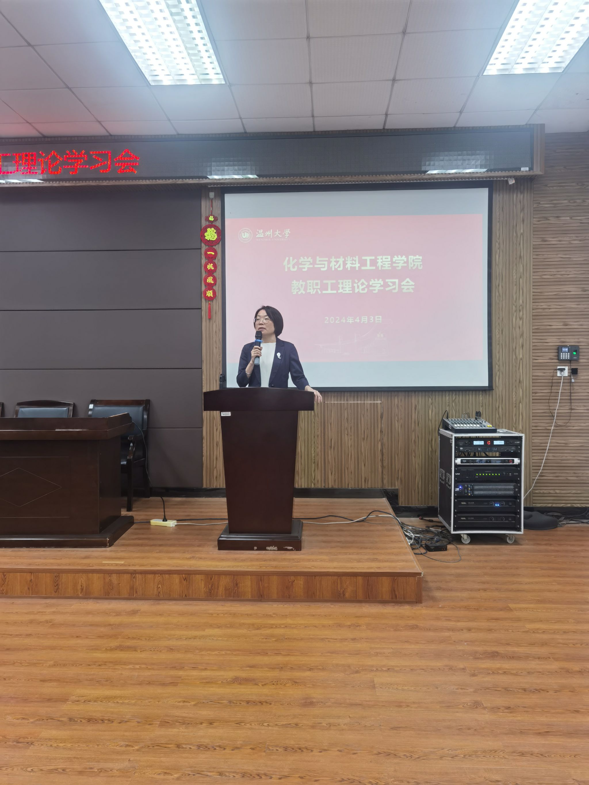 刘吟作教育家精神——师德师风主题教育及两会精神专题理论教育。她从理想信念、道德情操、育人智慧、躬耕态度、仁爱之心、弘道追求六个方面阐释了教育家精神的内涵,并对2024年政府工作报告中关于加强高质量教育体系建设做了传达学习。她鼓励老师们牢记为党育人、为国育才的初心使命,树立“躬耕教坛、强国有我”的志向和抱负,提升自身修养,精进教学技能,努力成长为新时代教育的“大先生”,推动学院事业高质量发展。