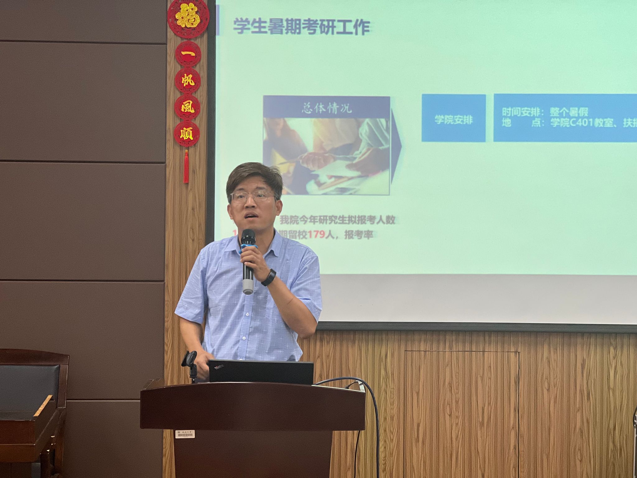 邹书记作党纪学习专题党课并作警示教育。他结合具体的典型案例进行剖析,以身边事教育教育人,警醒全院教职工要提高自己的遵规守纪意识,严格遵守各项规章制度,始终做到廉洁自律,鼓励全体教师瞄准高线、认清红线、守牢底线,争做“四有”好老师和新时代“大先生”。同时围绕意识形态、党纪学习、师德师风、暑假安全、实验室安全、校友、师生禁毒、反恐怖、防范金融诈骗和“校园贷”等工作进行了强调部署。他对全体教职工提出三点要求:一要提高政治站位,严守政治纪律和政治规矩;二要坚持立德树人,内化教书育人理念;三要强化安全意识,提升安全防范能力。