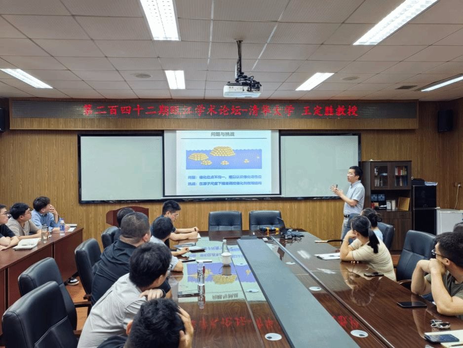报告结束后,王定胜教授进行现场答疑。现场师生对于设计耐用的酸性OER催化剂前沿领域产生了浓厚的兴趣,参加的老师和学生提出了多个相关问题,王定胜教授对提问进行了详细解答,并同参会的老师进行了深入探讨。这次讲座让师生们了解到可以通过构建单原子活性位点电子结构与催化性能的构效关系直接设计合成目标催化剂,为师生们在原子尺度下合理设计和优化催化剂提供了新的思路。