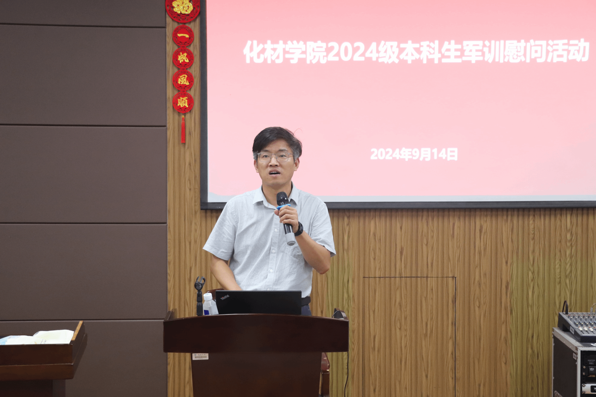 身着戎装展英姿,青春磨砺正当时。9月14日下午16:00,值此中秋来临之际,学院为2024级军训新生在11C-401教室组织小而温馨的慰问活动暨“劳育+安全”微专题教育。学院党委书记邹超、党委副书记王晓华出席,学工办辅导员以及全体军训新生参与活动。活动由王晓华副书记主持。