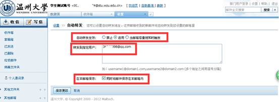 8、邮件转发功能:如平常用手机客户端接受邮件或常用的其他邮箱,可采用此功能。