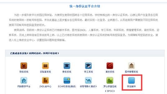 6、启用邮箱:通过身份认证平台(rz.rqntr.com)进入,选择“学生邮件”