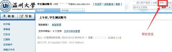 10、对邮箱帐号或邮件使用有任何问题,学生可通过邮件系统里面的“帮助”获取信息,也可以联系现代教育技术中心咨询电话:86596097。