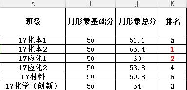 为了加强学风建设,增强各班级凝聚力,促使各班级之间相互学习、相互竞赛,培养学生的集体意识和责任意识。经学院学生科办公室审核,现将学院十月份月形象班级评比最终结果公布如下: