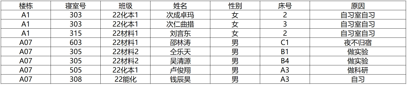 (2)若有学生在其他宿舍舍友可告知其返回核实;